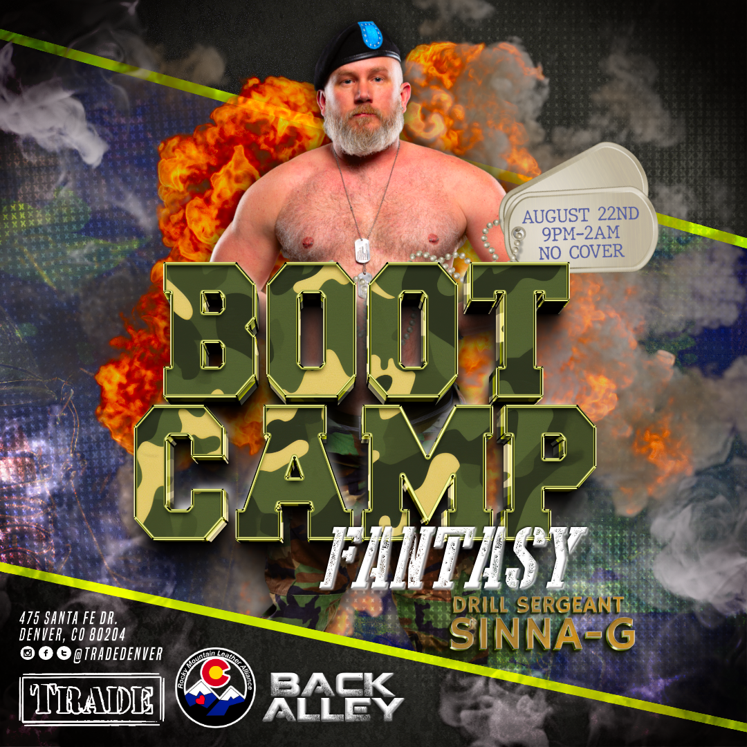 ATTEN-HUT! Back Alley weekend continues with BOOT CAMP FANTASY! Camo prints and D prints are all apart of this events fantasy! Dress up in your gear or dress down at our lockers! Make sure you show your drill sergeant your privates