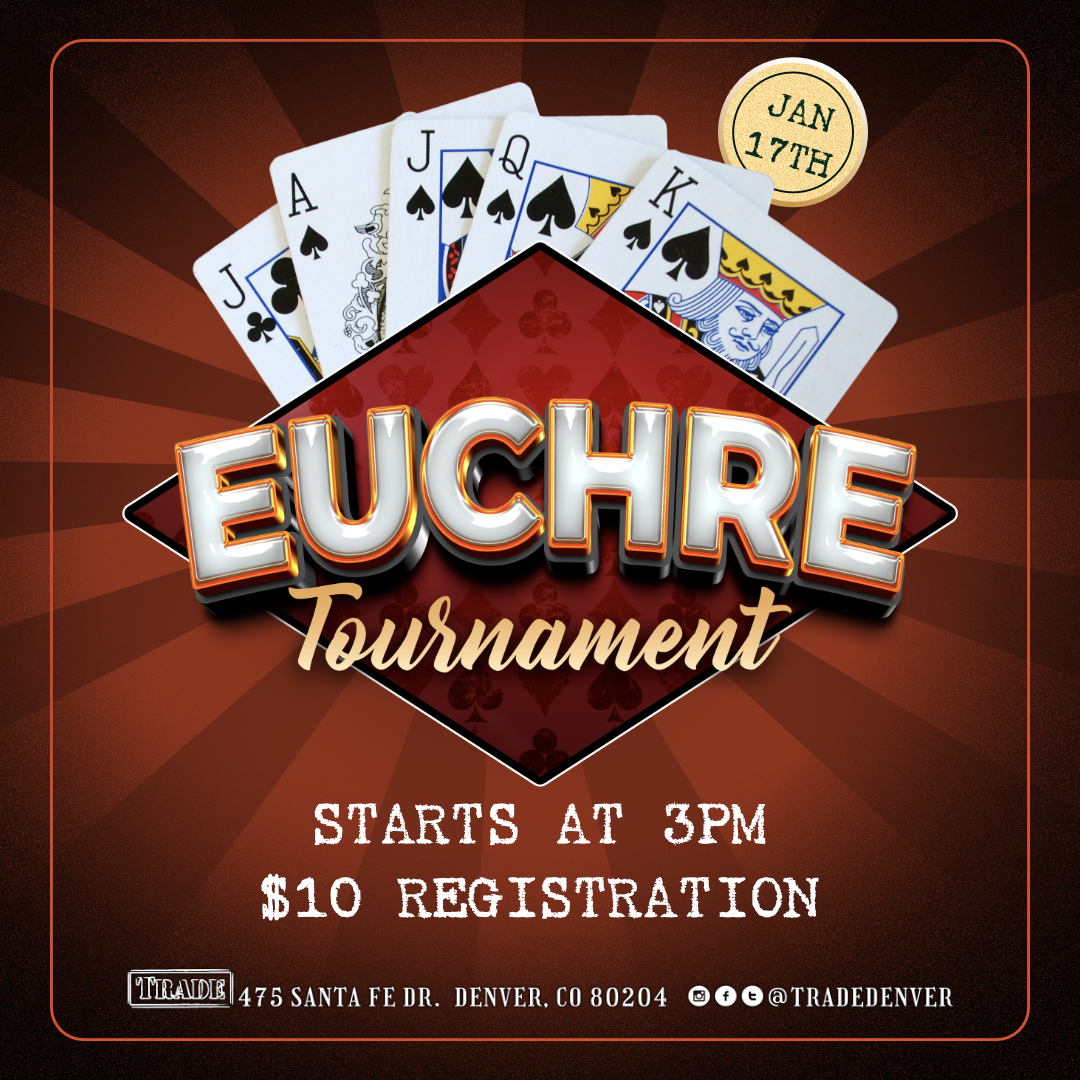 Join us Saturday Jan 17th at Trade for our Euchre Tournament—where the cards are sharp and the company’s even better.
