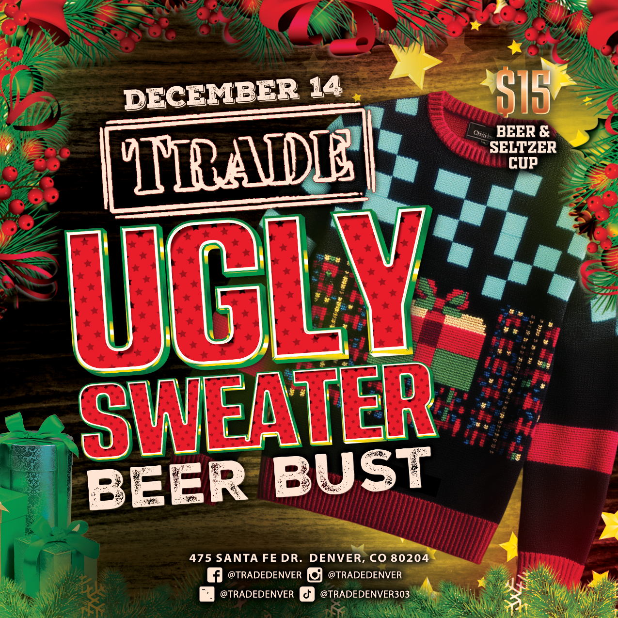 December 14th Show off your most outrageous knit while you enjoy #DenversBEST Beer Bust. The uglier the sweater, the better the buzz.